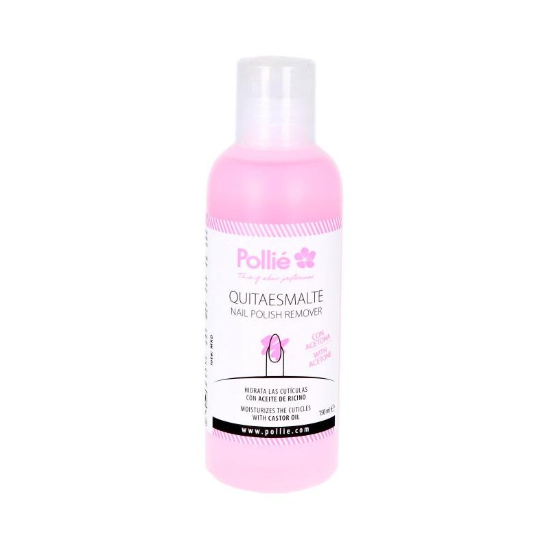 Quitaesmalte con acetona enriquecido con aceite de ricino. Elimina el esmalte de las uñas de forma suave dejándolas brillantes y perfumadas.