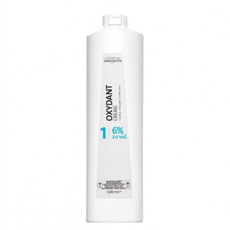 Oxidante profesional en crema. Es el agente activador y catalizador que permite la aplicación de la coloración en el cabello. Su función es activar el tinte, fijarlo, aclararlo o decolorarlo. Se presenta en crema para mayor y mejor fijación, protección y brillo del cabello. El agua estabilizada que la compone es menos agresiva y evita irritaciones del cuero cabelludo. Combinada con los tintes L´Oréal obtendrás inmejorables resultados. Según el resultado que queramos elegiremos entre estos tipos: 20vol (para aplicar tintes del mismo tono o uno menos y para cubrir cabello con mucha cana), 30vol (para tintes que necesitan aclarar dos tonos del tono natural o cabellos rubios), 40vol (para aclarar tintes tres tonos, se utiliza para los rubios más claros).